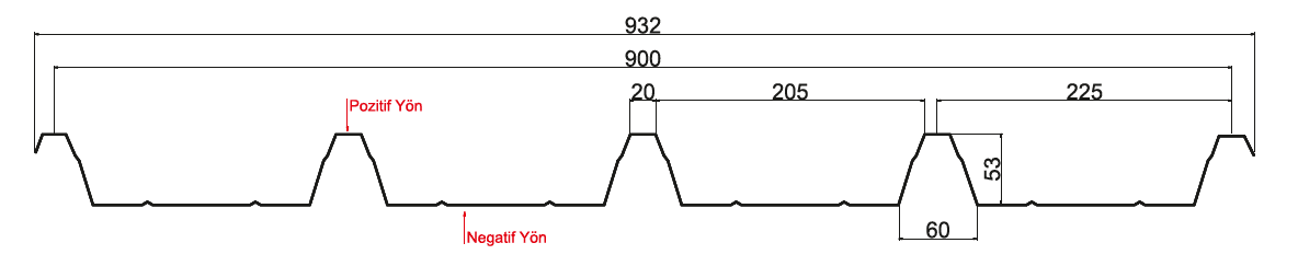 55/900 form trapez sac Isı izolasyonu kullanılmayan tek kat kaplama malzemesi kullanılan ve aynı zamanda geniş açıklıklı çatılarda yüksek taşıma değerleriyle çok efektif bir formdur.55/900 form trapez sac sandviç sistem olarak çift kat metal arası yalıtım malzemeleri uygulanan projelerde üst metal olarak da değerlendirilme özelliklerine sahiptir.